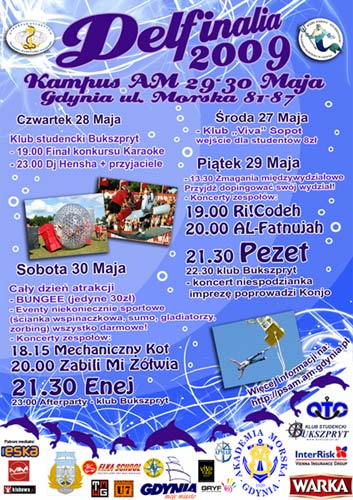 - Sopocki klub „VIVA”, w którym wszyscy chętni studenci będą mogli rozpocząć „DELFINALIA 2009”. Wejście za okazaniem legitymacji studenckiej będzie kosztować 8 zł. Na imprezie przedstawione będą prezentację obu samorządów studenckich AM i AMW.
