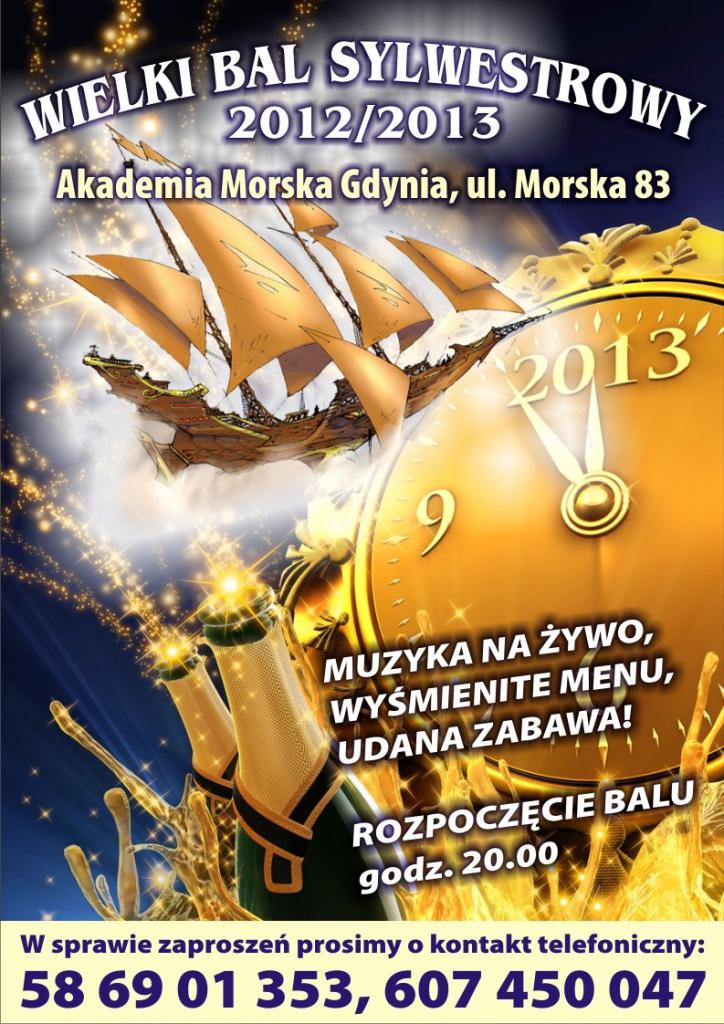 Zapraszamy wszystkich Państwa na tradycyjny XIV Bal Sylwestrowy w gdyńskiej Akademii Morskiej. Bal ten jest drugą po Balu Morskim tego typu imprezą, która wpisuje się do kalendarza wydarzeń Akademii Morskiej.
