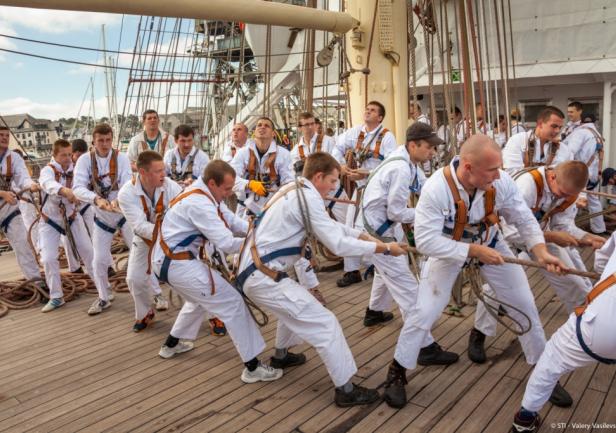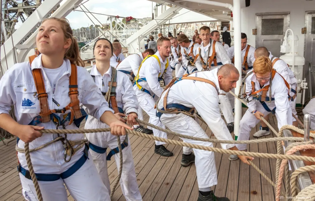 Relację z pokładu przesłał dzisiaj komendant żaglowca, kpt.ż.w. Rafał Szymański: "Wczoraj "Dar Młodzieży" prowadził paradę żaglowców przed startem do regat. Widowisko było imponujące - już nie setki a tysiące żaglowców, jachtów, motorówek, łodzi rybackich, holowników, towarzyszących regatowej flotylli, brało w nim udział. Pogoda sprzyjała, dzięki czemu postawiliśmy prawie wszystkie żagle. Po paradzie udaliśmy się na linie startu, którą przekroczyliśmy jako pierwsi. Po 16 godzinach wyścigu nadal prowadzimy i dystans do następnego statku klasy A, powoli ale systematycznie się powiększa - w poniedziałek rano wynosił około 14 mil morskich. Niestety to nie oznacza zwycięstwa w klasie, bo obowiązują przeliczniki wyrównujące szanse poszczególnych żaglowców. Tak wiec w oficjalnej tabeli na razie zajmujemy drugie miejsce. Prognozy na dzisiaj nie są złe i wiatr ma stężeć do 4-5 B. Spodziewamy się dotrzeć do linii mety dzisiaj przed północą."