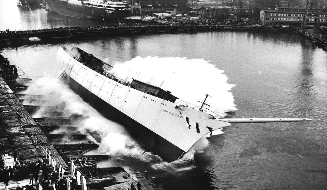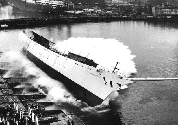 W uzupełnieniu dwie fotografie - ostatnie dni złomowanego "Lwowa" i 43 lata później - narodziny "Daru Młodzieży".