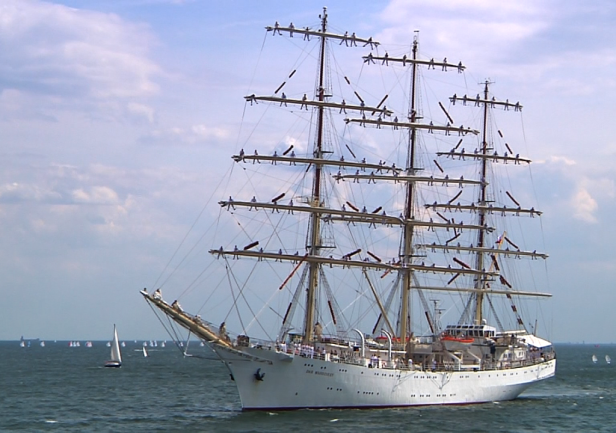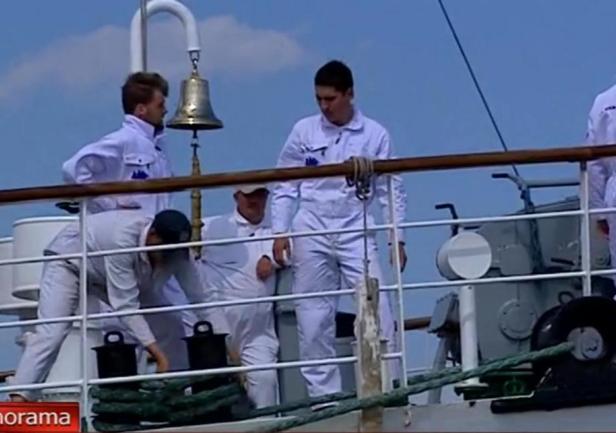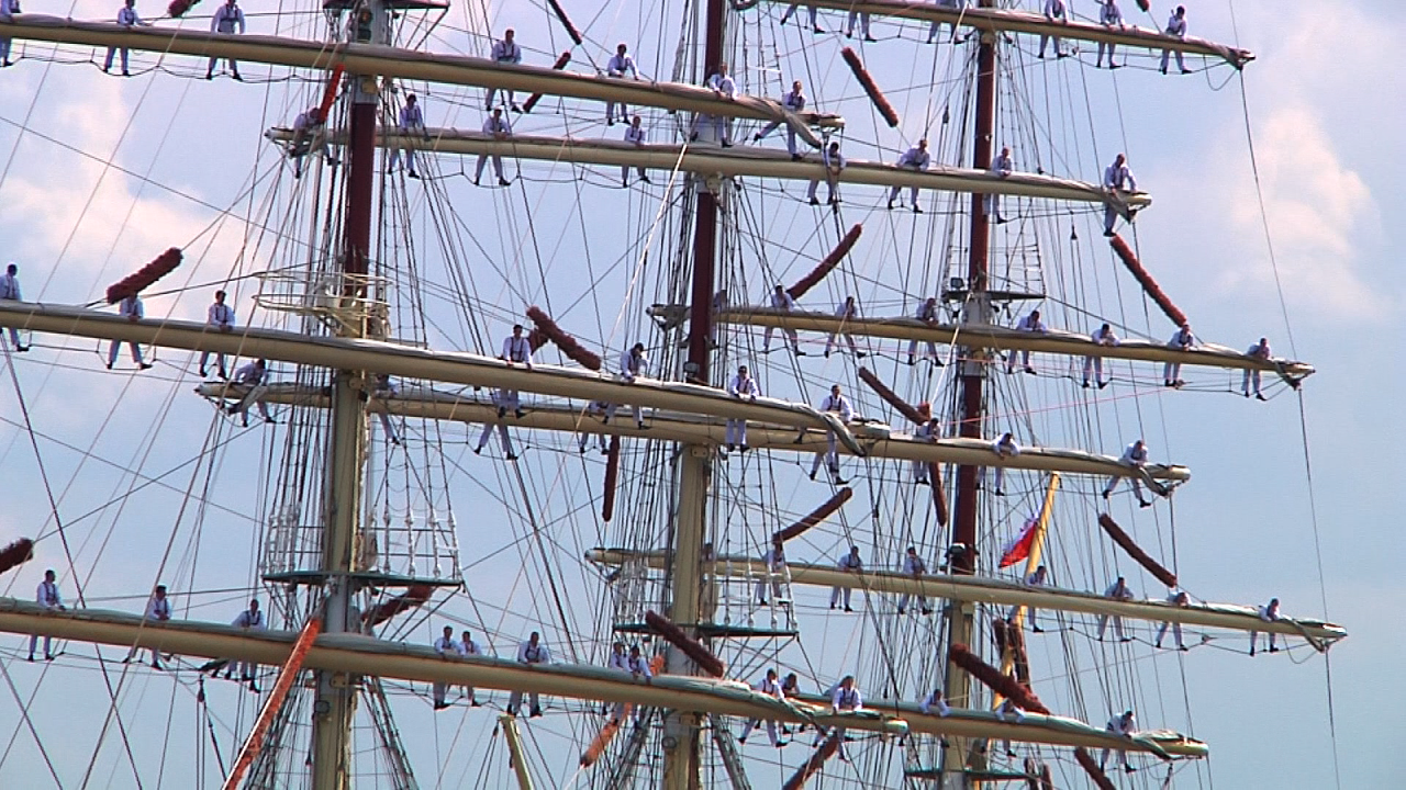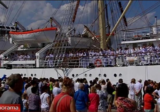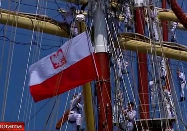 "Dar Młodzieży" jako pierwszy żaglowiec - uczestnik zlotu "Operacja Żagle Gdyni 2014" - zameldował się w gdyńskim porcie. Fregata Akademii Morskiej, pełniąca honorową rolę ambasadora zlotu, zaprezentowała się na wejściu w pełnej paradzie rejowej. Gdynianie i turyści szczelnie wypełnili końcówkę Mola Południowego i oklaskami powitali załogę oraz studentów. Wejście "Daru" relacjonowało wielu reporterów, m.in. "Panoramy" TVP Gdańsk, skąd także zapożyczyliśmy kilka filmowych kadrów.