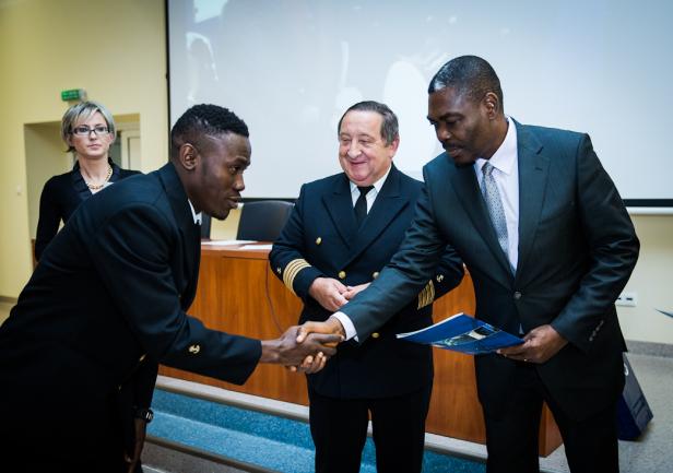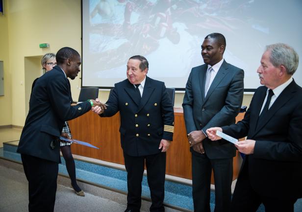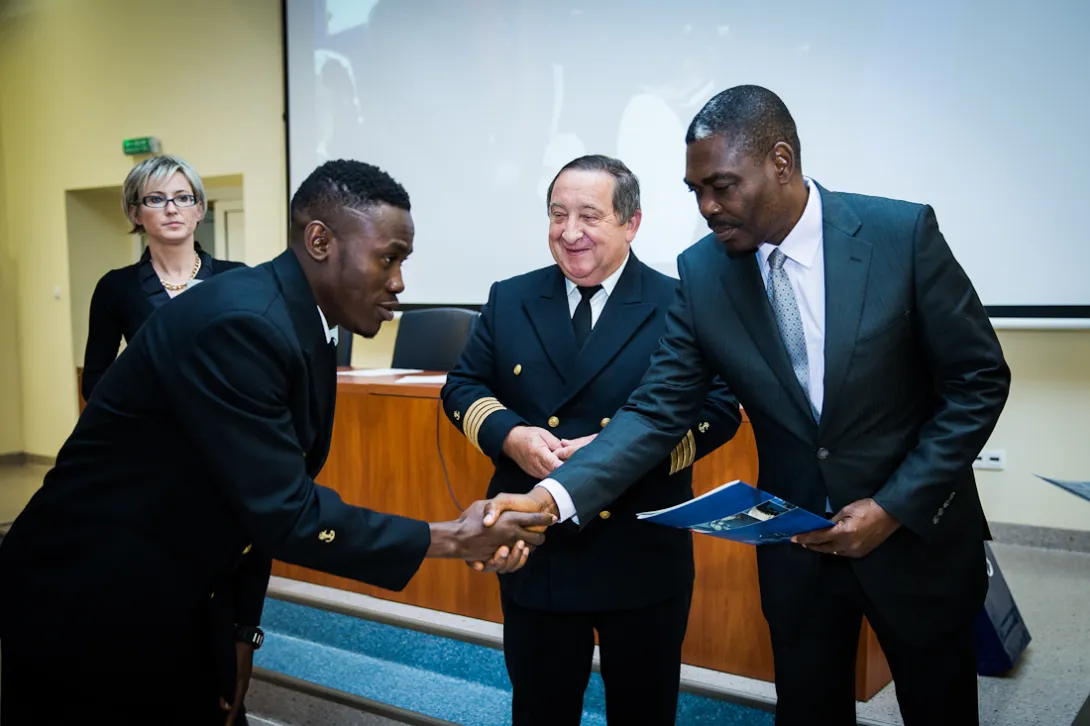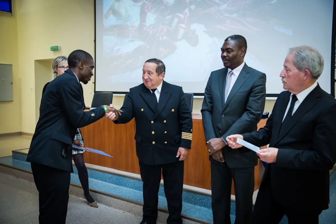 W siedzibie Wydziału Nawigacyjnego Akademii Morskiej w Gdyni uroczyście wręczono 17 słuchaczom certyfikaty Oficera Wachtowego i dyplomy ukończenia Gdyńskiej Szkoły Morskiej. Cała grupa to stypendyści rządu Nigerii, który doceniając renomę gdyńskiej uczelni, właśnie tutaj kształci przyszłych oficerów marynarki handlowej. To efekt wieloletniej już współpracy - pierwszy nabór uczniów z Nigerii miał miejsce w 2007 r. Przeszkolono dotąd 58 nawigatorów, większość z nich pływa już na stanowisku starszego oficera.