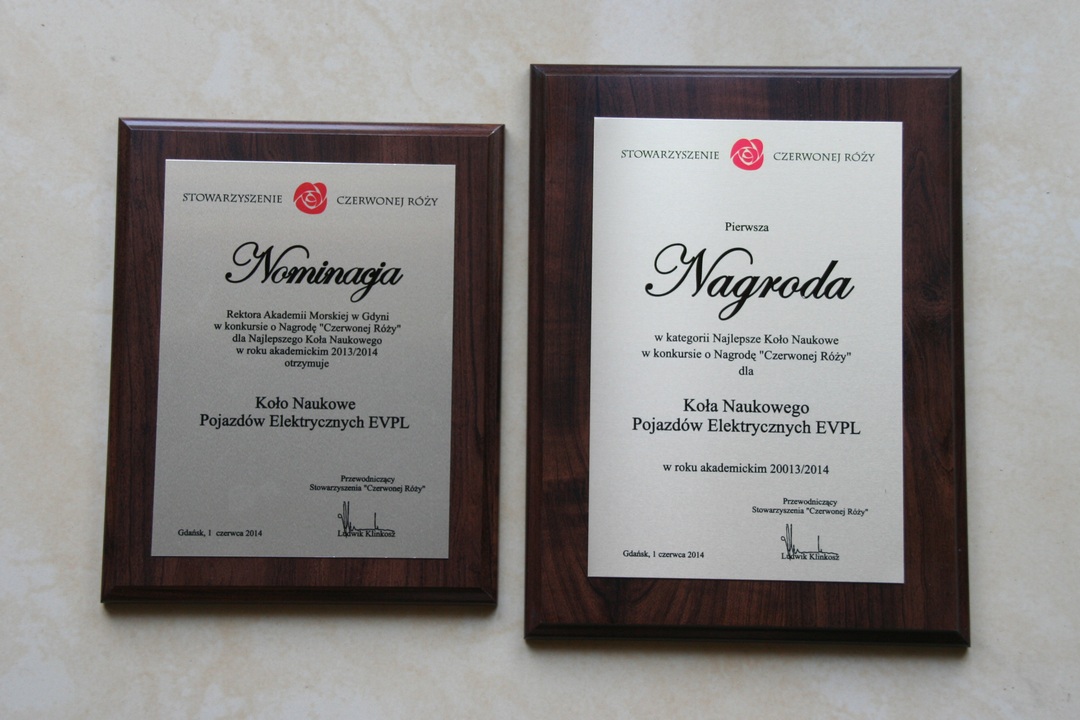 W konkursie Czerwonej Róży najlepszym Kołem Naukowym Pomorza zostało Koło Naukowe Pojazdów Elektrycznych EVPL z Akademii Morskiej w Gdyni. Koło otrzymałow nagrodę 12.000 zł ufundowaną przez CHIPOLBROK Chińsko-Polskie Towarzystwo Okrętowe.