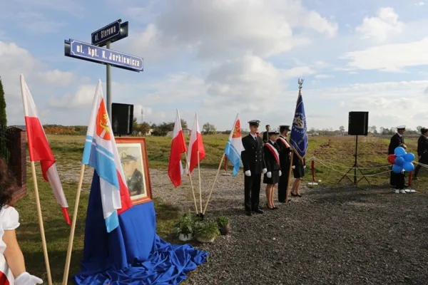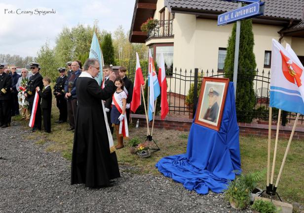 Uroczystość odsłonięcia - a chyba raczej, oficjalnego wprowadzenia w skład miejskiej infrastruktury drogowej nowej ulicy, poprowadził wiceprzewodniczący Rady Miasta pan Jerzy Miotke. Gośćmi honorowymi ceremonii byli - córka Komendanta, pani Małgorzata Łobodzińska-Jurkiewicz i syn pan Andrzej Jurkiewicz.  Oboje, w towarzystwie rektora Akademii Morskiej pana profesora Piotra Jędrzejowicza, dyrektor SP 39 im. Kazimierza Jurkiewicza pani Sabiny Dawidowskiej oraz pana kmdr por. Adama Duczmala, reprezentującego Akademię Marynarki Wojennej, przecinając bialo-czerwoną szarfę, wpisali w mapę Gdyni kolejny, swoisty pomnik Komendanta. Po zbudowaniu tutaj zaplanowanego osiedla, w wielu gdyńskich dowodach pojawi się adres: "ul. kpt.ż.w. Kazimierza Jurkiewicza".