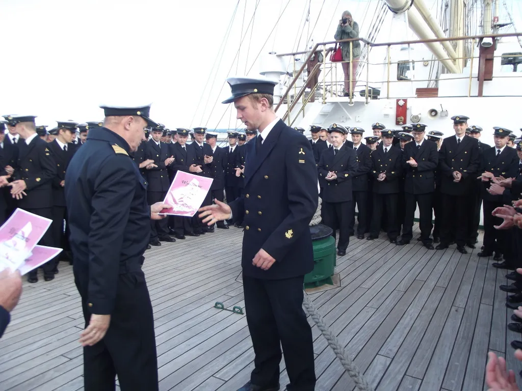 Tradycyjną zbiórką na rufowym pokładzie, rozdaniem dyplomów zaliczenia praktyk, z wyróżnieniem najlepszych studentów, komendant żaglowca kpt.ż.w. Marek Menke zakończył sezon morskich praktyk na "Darze Młodzieży".