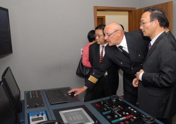 Obie delegacje zapoznały się z działalnością Akademii Morskiej w Gdyni. Zwiedziły najnowocześniejszy symulator siłowni okrętowych na Wydziale Mechanicznym, a następnie laboratoria i symulatory na Wydziale Nawigacyjnym. JM Rektor zaprezentował gościom statek szkolny ,,Dar Młodzieży”.