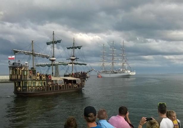 Polską banderę, obok naszego "Daru", reprezentować będą "Pogoria", ORP "Iskra", "Fryderyk Chopin", niedawno odremontowany oldtimer "Bonawentura" oraz kilka jachtów. Rozpiętość wieku żaglowców, równo sto lat - od najstarszego holenderskiego barku "Europa" (zbud. 1911) do najmłodszego, niemieckiego barku "Aleksander von Humbold II" (zbud. 2011).