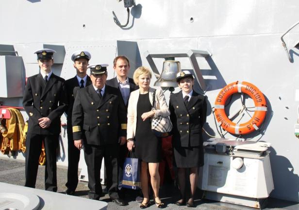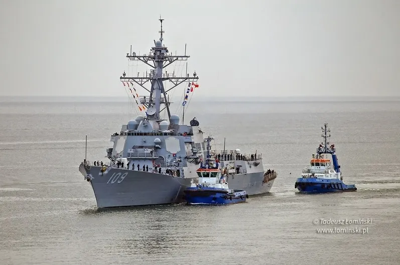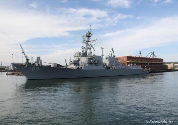 Podczas wizyty w Gdyni, dowódca okrętu komandor Darren T. Dugan spotkał się z przedstawicielami wojska i władz samorządowych. Załoga okrętu wzięła m.in. udział w uroczystościach 70. rocznicy zakończenia II wojny światowej 8 maja na Westerplatte. To był znaczący element wsparcia przez Amerykanów polityki polskiego rządu. A także wyraz realizacji postulatów przyjętych podczas ubiegłorocznego szczytu Sojuszu w Newport – czyli obecności sojuszników na wschodniej flance NATO.
