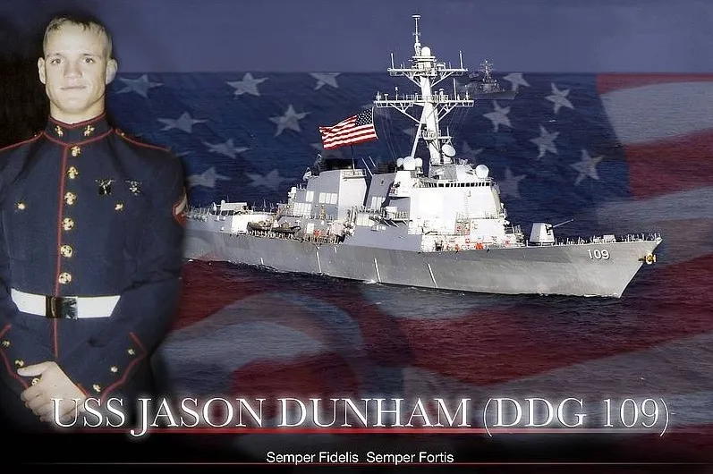 Nazwa okrętu – „Jason Dunham” – to nazwisko kaprala piechoty morskiej, który zginął w Iraku ratując życie dwóch innych żołnierzy korpusu marines. Otrzymał za to pośmiertnie najwyższe amerykańskie odznaczenie – Medal Honoru za odwagę.
