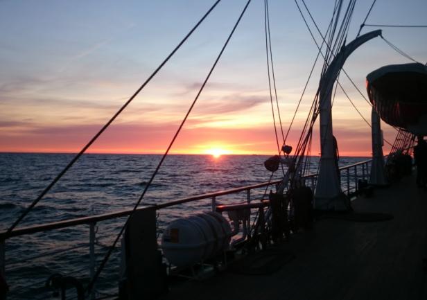 To był naprawdę bardzo udany rejs. Zaokrętowali na "Dar" w Gdyni , ale zanim wypłynęli, przez 2 dni "na sucho" przechodzili obowiązkowe intensywne szkolenia, niezbędne do uzyskania podstawowych certyfikatów morskich wymaganych Konwencją STCW. Na pływalni, basenie żeglarskim i poligonie ppoż Akademii Morskiej.