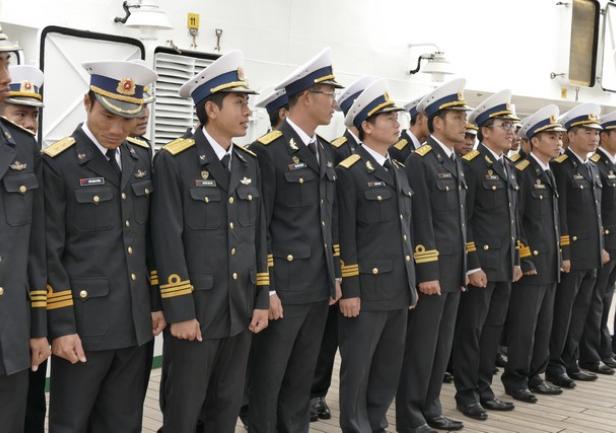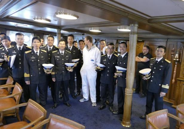 Pewną konsternację na "Darze" wzbudziły identyczne galony na rękawach wszystkich wietnamskich gości - od dowódcy okrętu po szeregowych marynarzy prezentowali trzy złote paski, górny z tzw. pętlą Nelsona, przypominające galony porucznika marynarki w Polskiej Marynarce Wojennej. Na wszelki wypadek wszystkich witano świstem trapowym. Okazuje się, że zróżnicowanie stopni odzwierciedlają naramienne pagony mundurów.