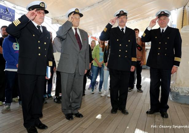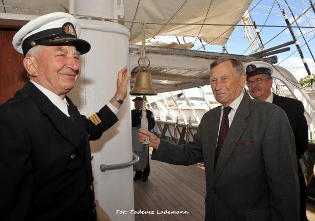 Zdjęcia kapitana Jana Sokołowskiego z uroczystości przyznania, na "Darze Pomorza", tytułu honorowego kapitana żeglugi wielkiej prof. Zdzisławowi Wajdzie - Cezary Spigarski i Tadeusz Lademann.
