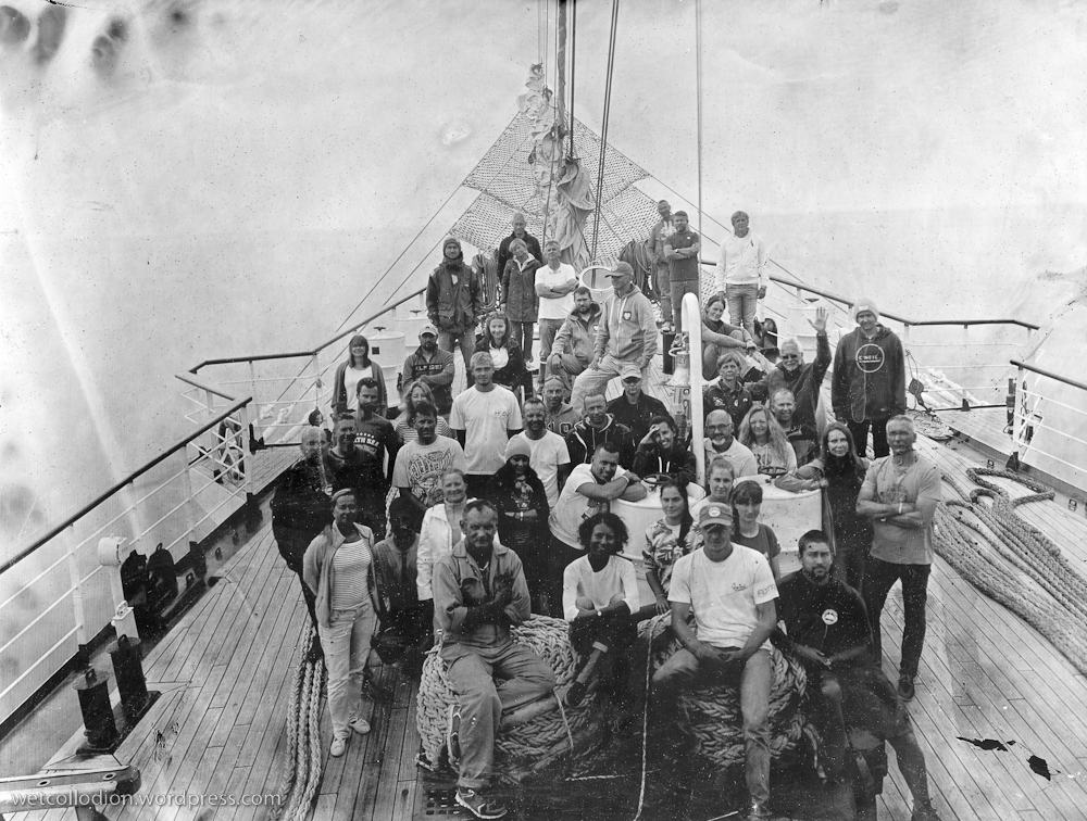 To był niezwykły eksperyment. Na jesienny rejs z Goteborga do Gdyni zaokrętował na „Dar Młodzieży”  pan Andrzej Górski – człowiek zafascynowany XIX wieczną fotografią.  Podczas rejsu wykonał, tradycyjną techniką tzw. mokrego kolodium z pionierskich lat  fotografii , przy użyciu ponad 100-letniego aparatu,  serię zdjęć ukazujących życie żaglowca.