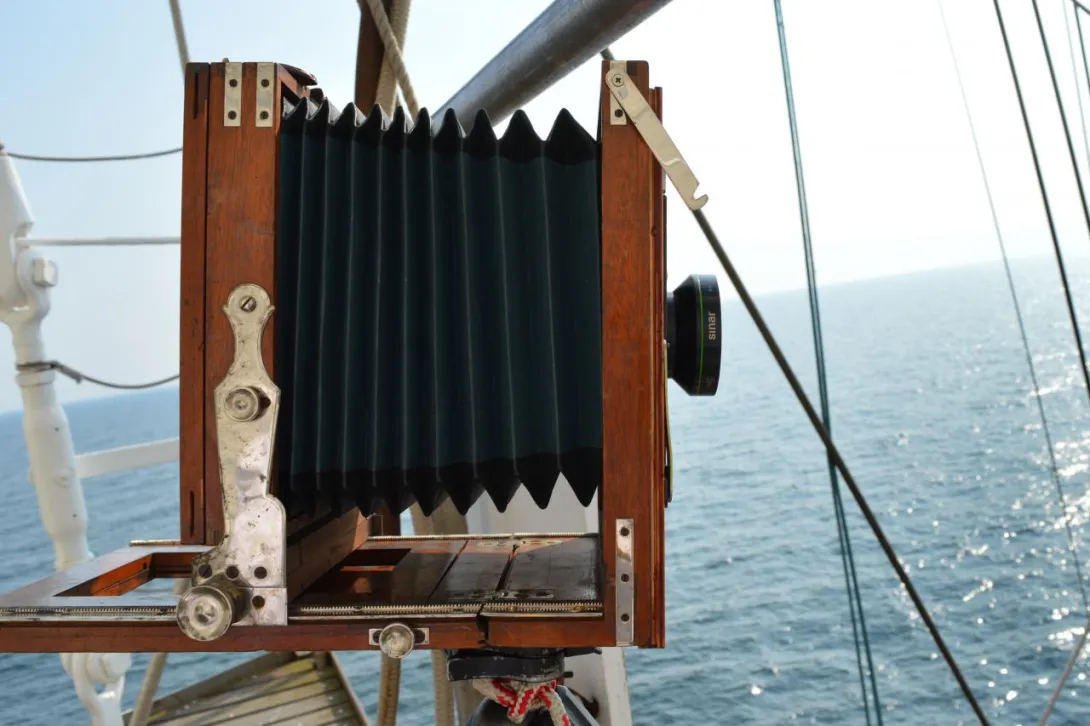 To wystawa unikatowa – 17 wielkoformatowych fotogramów, ukazujących życie na naszym żaglowcu – zrealizowanych archaiczną, XIX-wieczną fotograficzną techniką, przez pana Andrzeja Górskiego podczas rejsu „Darem Młodzieży”. Zastosowana technika tzw. „mokrej płyty” dominowała w fotografii drugiej połowy XIX wieku. Gotowe czarno-białe fotogramy zachowują niepowtarzalny klimat, plastykę i urok artystycznych grafik.