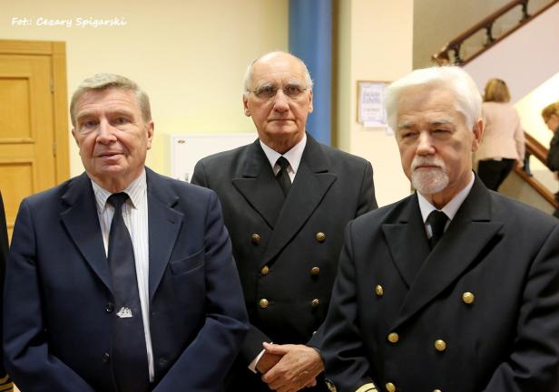 Przewodniczący Stowarzyszenia Starszych Mechaników Morskich Pan Adam Strózik wręczył rektorowi AMG prof. dr. hab. inż. Januszowi Zarębskiemu medal okolicznościowy 35-lecia SSMO.