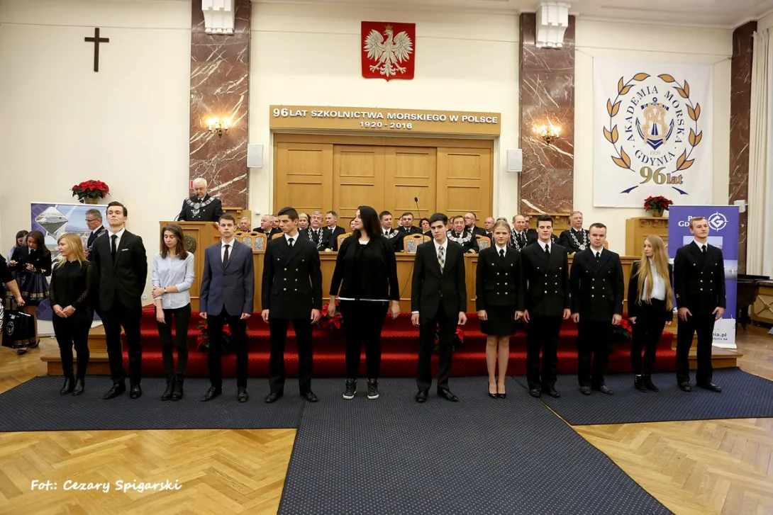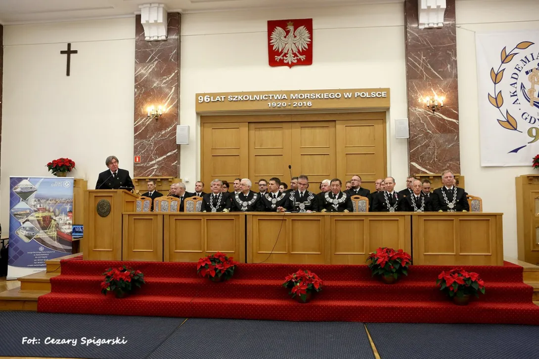 W trakcie otwartego posiedzenia Senatu AMG, z okolicznościowym przemówieniem wystąpił JM Rektor prof. dr hab. inż. Janusz Zarębski. Zebranych zapoznano z treścią listu, jaki na ręce rektora z okazji 96 rocznicy polskiego szkolnictwa morskiego przesłał Wiceprezes Rady Ministrów, Minister Nauki i Szkolnictwa Wyższego, Jarosław Gowin. Zasłużonych pracowników uczelni udekorowano odznaczeniami resortowymi i medalami za długoletnią służbę.