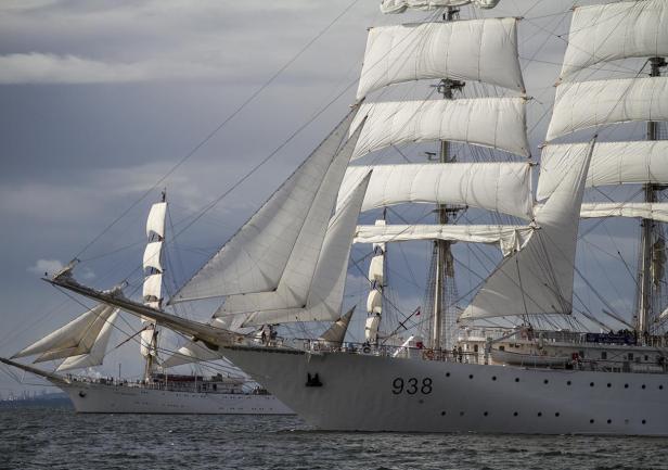 Prezentujemy kilka fotografii Przemysława Kozłowskiego ze wspólnego pływania obu fregat - "Daru" i "El Mellaha"