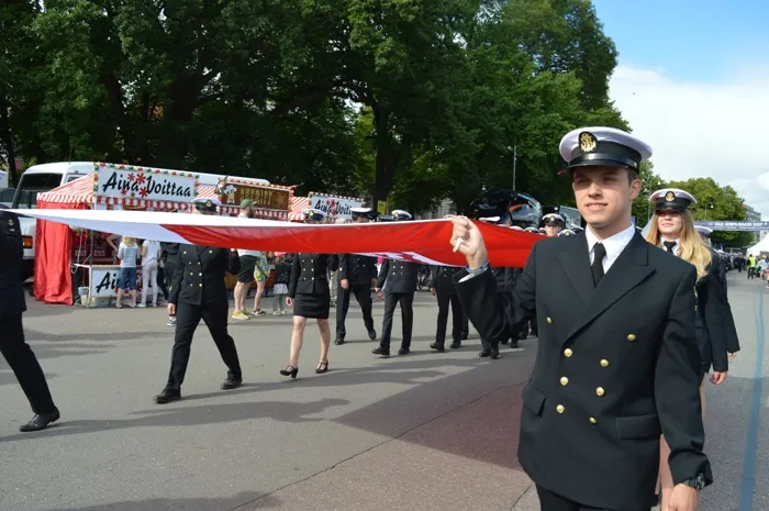 Prawdziwe święto żaglowców rozpoczęło się w niedzielę, 23 lipca. Wówczas wszystkie żaglowce uczestniczące w regatach rzuciły cumy i przedefilowały rzeką Aurą przez środek miasta, a następnie w pieknej paradzie szły długim, ponad pięćdziesięciomilowym szlakiem pomiędzy szkierami na otwarte morze. Na całym dystansie żegnały nas masy ludzi zebrane na brzegach wysepek i pokładach niezliczonych żaglówek, motorówek i różnego rodzaju sprzętów pływających wzdłuż całego szlaku.
