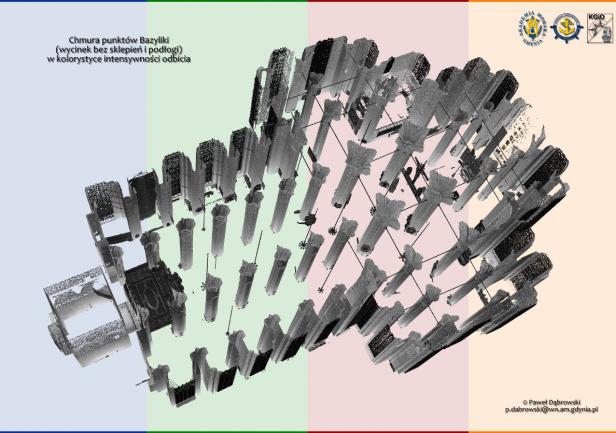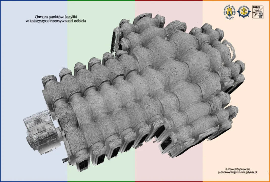 Dziesiątki gigabajtów danych połączono w oprogramowaniu Trimble RealWorks w spójną całość. W rezultacie uzyskano niezwykle bogaty zbiór danych przestrzennych (geo-danych) dotyczących wnętrza monumentalnej Bazyliki. Otrzymana chmura punktów będzie przedmiotem prac i analiz badawczych Katedry w dziedzinie skaningu laserowego.