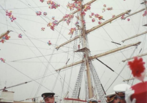 Za pośrednictwem pana Przemysława Wielowiejskiego z Centrum Nauki Kopernik otrzymaliśmy 70 fotografii z pamiętnej, pierwszej wielkiej podróży „Daru Młodzieży”, na morski festiwal do Osaki w 1983 roku. Autorką fotografii jest pani Kazuko Adachi – tłumaczka opiekująca się w Japonii naszym żaglowcem. Na amatorskich fotografiach widzimy członków załogi „Daru” podczas pobytu w Osace, komendanta Tadeusza Olechnowicza i samą ofiarodawczynię sympatycznie wspominającą spotkanie z polskimi gośćmi.
