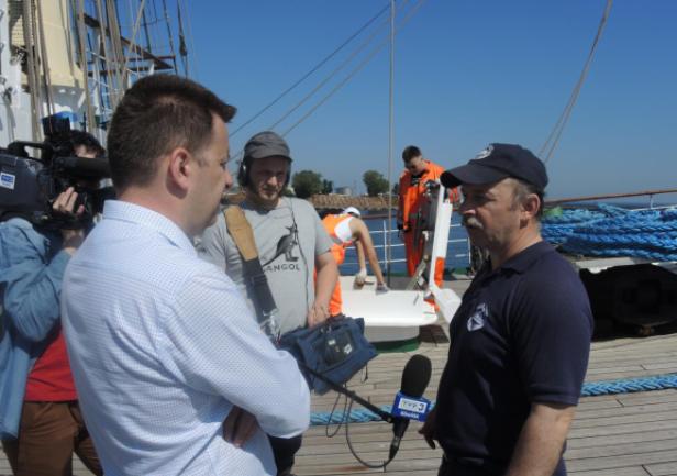Młodzi praktykanci od wczoraj poznają smak codziennej marynarskiej służby. Prace bosmańskie, rozładunek zaopatrzenia, sztauowanie, pucowanie mosiądzów, służby na pokładzie i w kuchni. Na razie niewiele ma to wspólnego z wielką morską przygodą, ale już w niedzielne południe, poczują emocjonujący smak pożegnań, staną się uczestnikami, współtwórcami historii biało-czerwonej bandery.