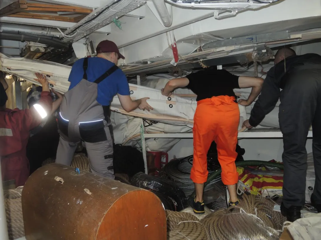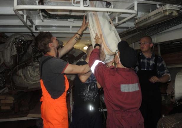 Gorący (delikatnie powiedziane) czas dla wszystkich związanych i odpowiedzialnych za wyjście "Daru" w Rejs Niepodległości. Po powrocie ze stoczni i zamustrowaniu pierwszych grup szkolnych ze Szczecina i Świnoujścia, ruszyły ostro prace związane z przyjmowaniem zaopatrzenia na rejs. Żywność dla ok. 160 osób, medykamenty, materiały sanitarne, wszystko co niezbędne w morskiej podróży. Permanentne testowanie nowo zamontowanych urządzeń, ostatnie prace serwisowe. Pod pokład do dziobowej żagielkoi załadowano komplet nowych, specjalnie zamówionych na ten rejs żagli. Sprawdzanie i porządkowanie dokumentów.