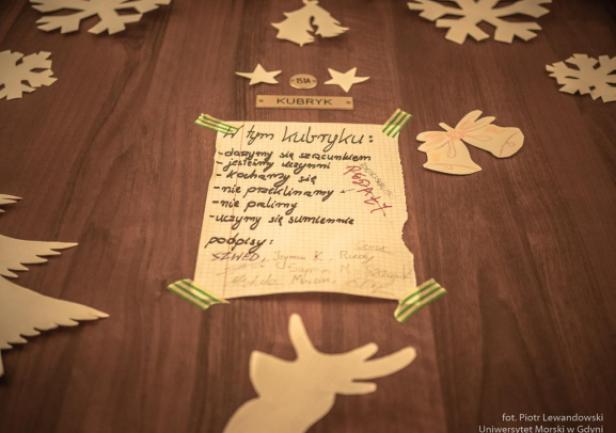 Szóstego grudnia to także dzień świętego Mikołaja. Nie obyło się bez niespodzianek. Rano zastałem na moich drzwiach przepiękne ręcznie wycinane papierowe ozdoby. Złośliwiec jeden (czyli ja sam) powiedział że to wizytówka – „tu mieszka bałwan i jeleń”, ale sprawcy twierdzą, ze jest w błędzie. Okazało się że wiele innych drzwi zostało podobnie ozdobione. Na podniesieniu bandery Mikołajki wręczyły wybrańcom piękne ręcznie robione skarpety wypchane łakociami. Teraz w różnych zakamarkach statku ruszyła nielegalna produkcja łańcuchów na choinki które mamy dostać w San Francisco - bosman pilnuje łańcuchów kotwicznych ;-), bo jest konkurs na najdłuższy