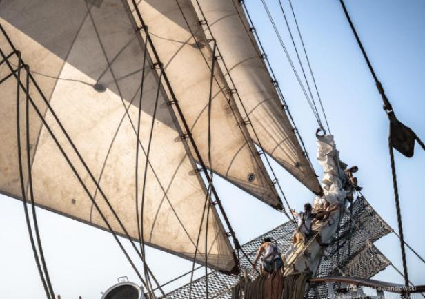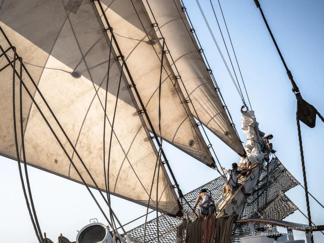 Przedwczoraj nareszcie postawiliśmy żagle. "Dar" znów wyglądał pięknie, na statku nie było słychać naszych „diesli”, a wibracje na rufie ustały. Postawione żagle maja chyba właściwości terapeutyczne - lekko na duszy.