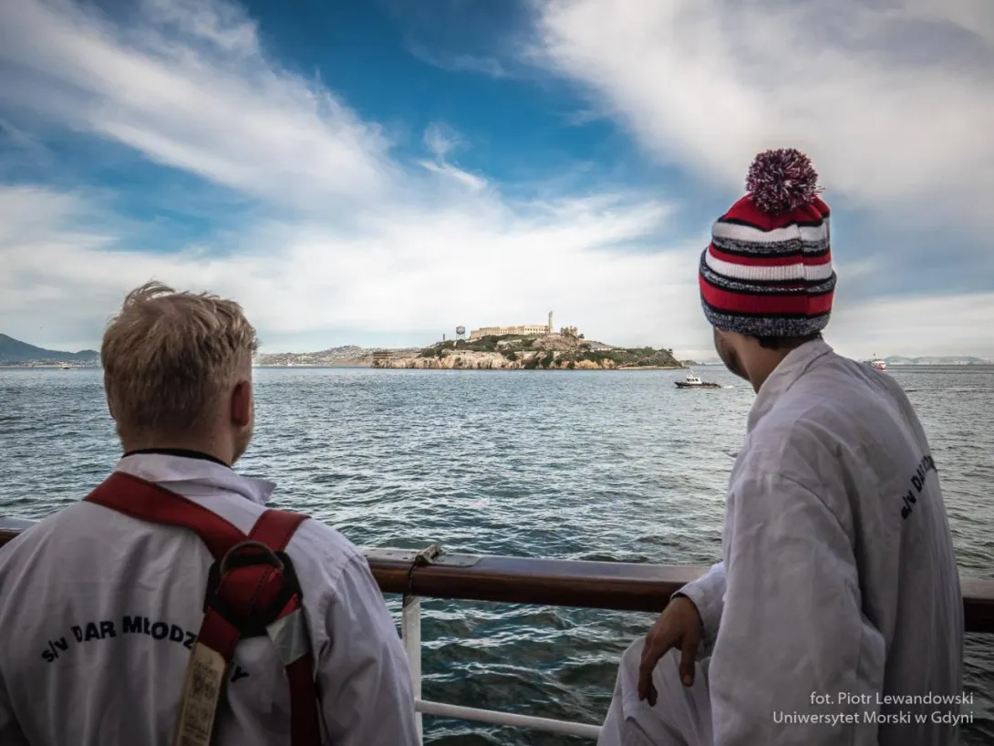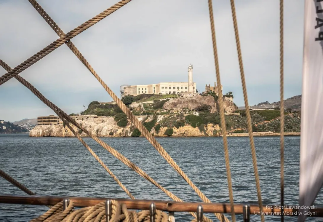 W kilku zdaniach o San Francisco. Nie udało się wejść do Golden Gate na żaglach, szkoda. Na przeszkodzie stanęła amerykańska biurokracja, życie. Na wyjściu udało się nam postawić wszystkie sztaksle i kliwry – chyba całkiem ładnie wyglądało.