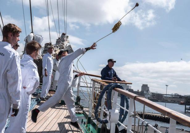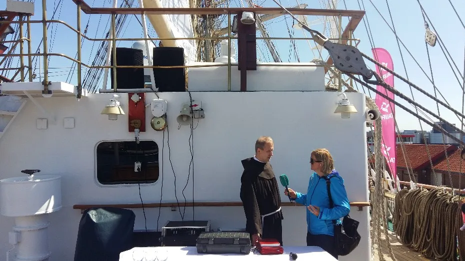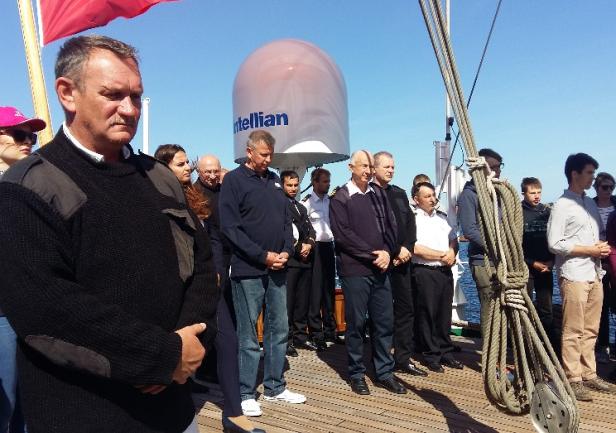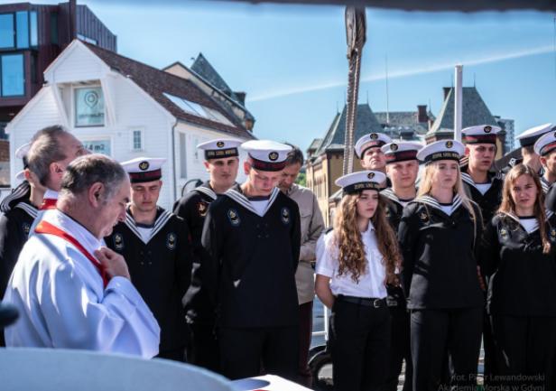Następnego dnia, przed południem, na rufie odbyła się msza święta z udziałem członków załogi, praktykantów i przedstawicieli Polonii, koncelebrowana przez o. Jerzego Limanówkę z fundacji Salvatii – współorganizatora rejsu, i miejscowego duchownego o. Elizeusza. Ksiądz Limanówka dziękował Polakom za podtrzymywanie polskiej tradycji w Stavanger, na norweskiej ziemi.
