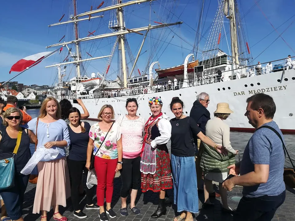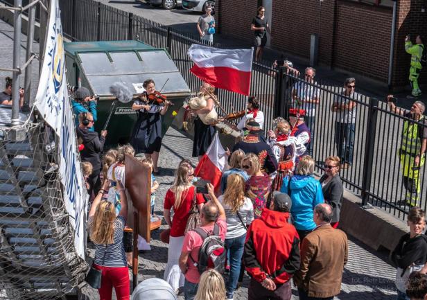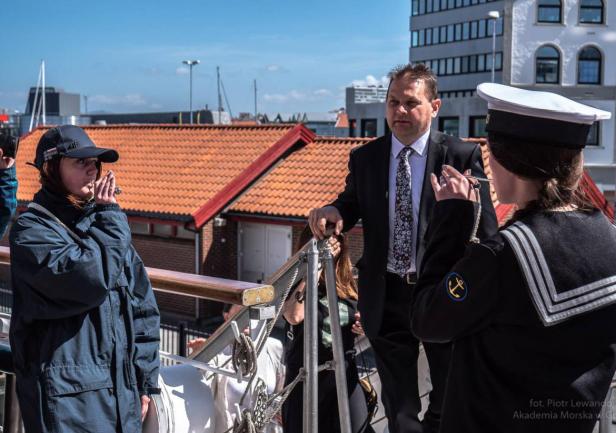 Pierwszą osobą, która weszła na pokład była przewodnicząca Towarzystwa Polsko-Norweskiego w Stavanger pani Beata Peksyk. W imieniu Ambasador RP w Norwegii powitał statek radca-minister Marian Siemakowicz.