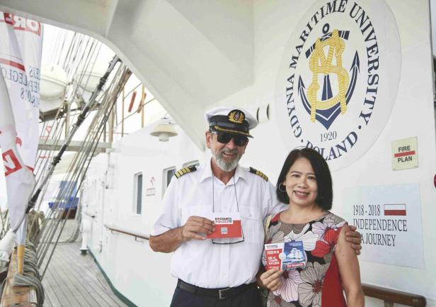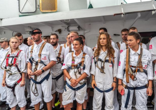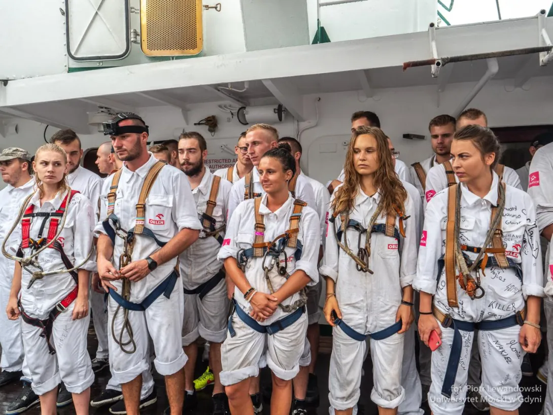W podróży uczestniczyło 948 członków załogi szkolnej w tym: 539 studentów UMG (212 WN, 185 WM, 52 WE), 61 ucznió średnich szkół morskich (32 ZSM Świnoujście, 29 ZCEMiP Szczecin) - w sumie 600 uczestników dla których udział w kolejnych etapach rejsu stanowił obowiązkową praktykę morską oraz 348 laureatów konkursu Rejs Niepodległości; zmieniali się również członkowie załogi stałej - w sumie płynęło ich 77; na trasie Gdynia - Singapur komendantem był kpt.ż.w. Ireneusz Lewandowski, którego zmienił kpt.ż.w. Rafał Szymański, doprowadzając żaglowiec do Gdyni.