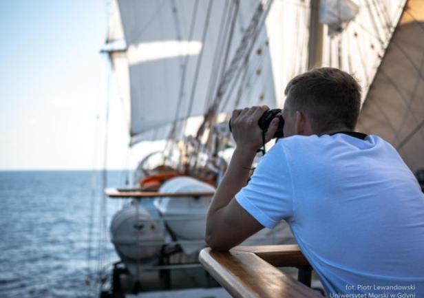 A co robi się na wachcie? Czworo praktykantów na mostku: nawigacyjny, sternik i dwa „oka” (obserwatorzy). Ci ostatni bez względu na pogodę i porę dnia stoją na zewnątrz i obserwują horyzont. Na każdej wachcie jest „bosmański” który pilnuje żeby wszystko grało – to właśnie on/ona wybija „szklanki”, robi inspekcje całego statku i przekazuje polecania od przełożonych. Jest też osoba wyznaczona na wachtę w maszynie.