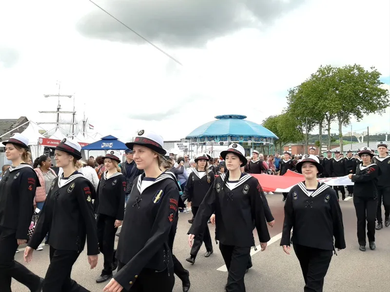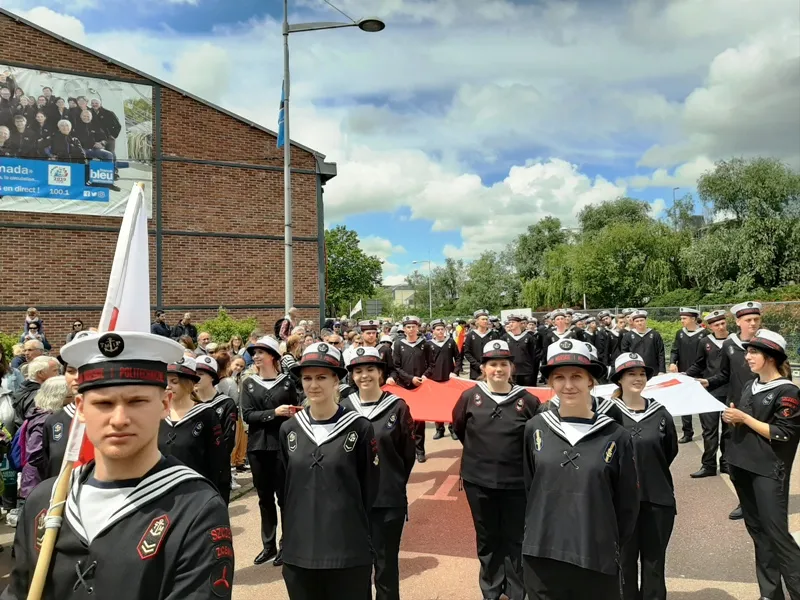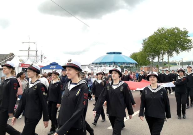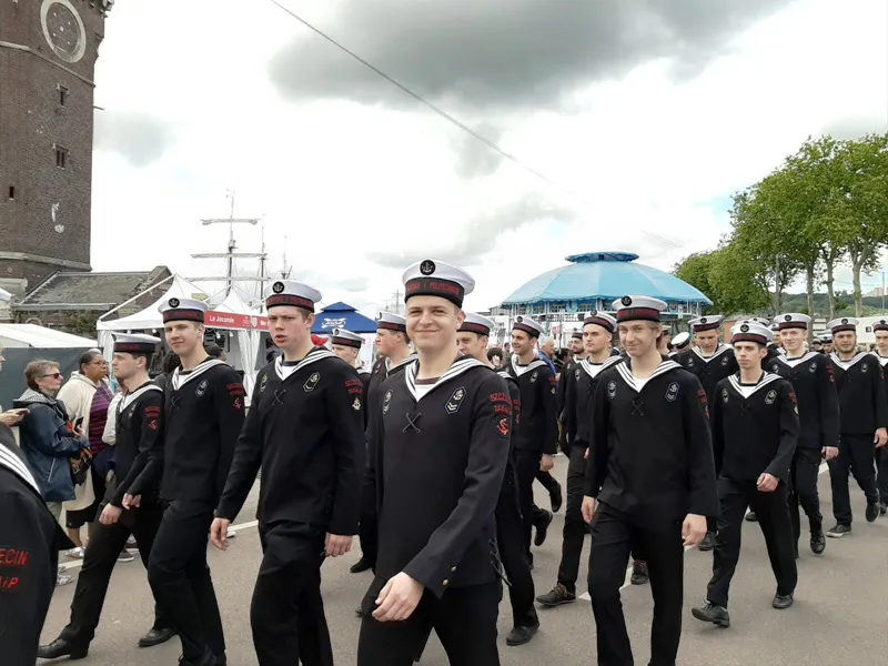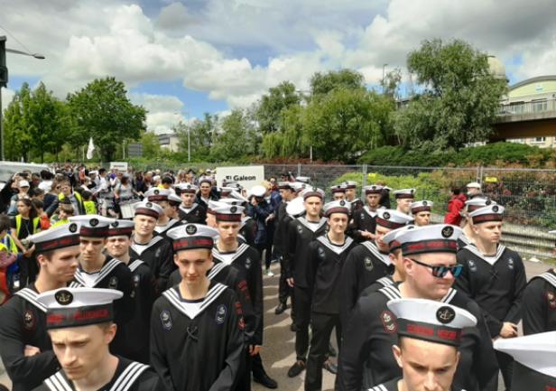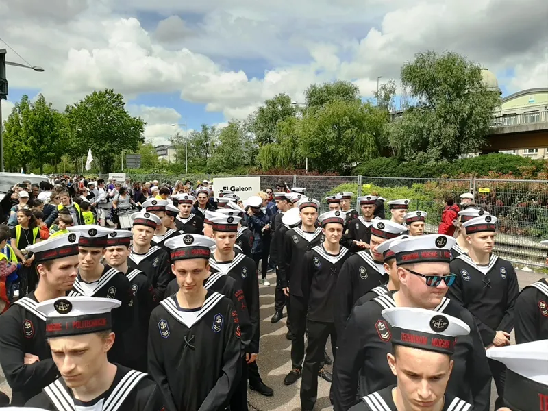 W środę przez Rouen przeszła parada załóg. Na całe szczęście pogoda w miarę dopisała i zaczęło padać dopiero po zakończeniu. Nasi praktykanci dobrze wypadli. Każda załoga występowała we własnej „choreografii” od perfekcyjnego marszu do chaotycznych tańców. Paradzie towarzyszyło kilka orkiestr – typowych dętych, szkockich oraz omańskich dudziarzy i marszowych bębnów.