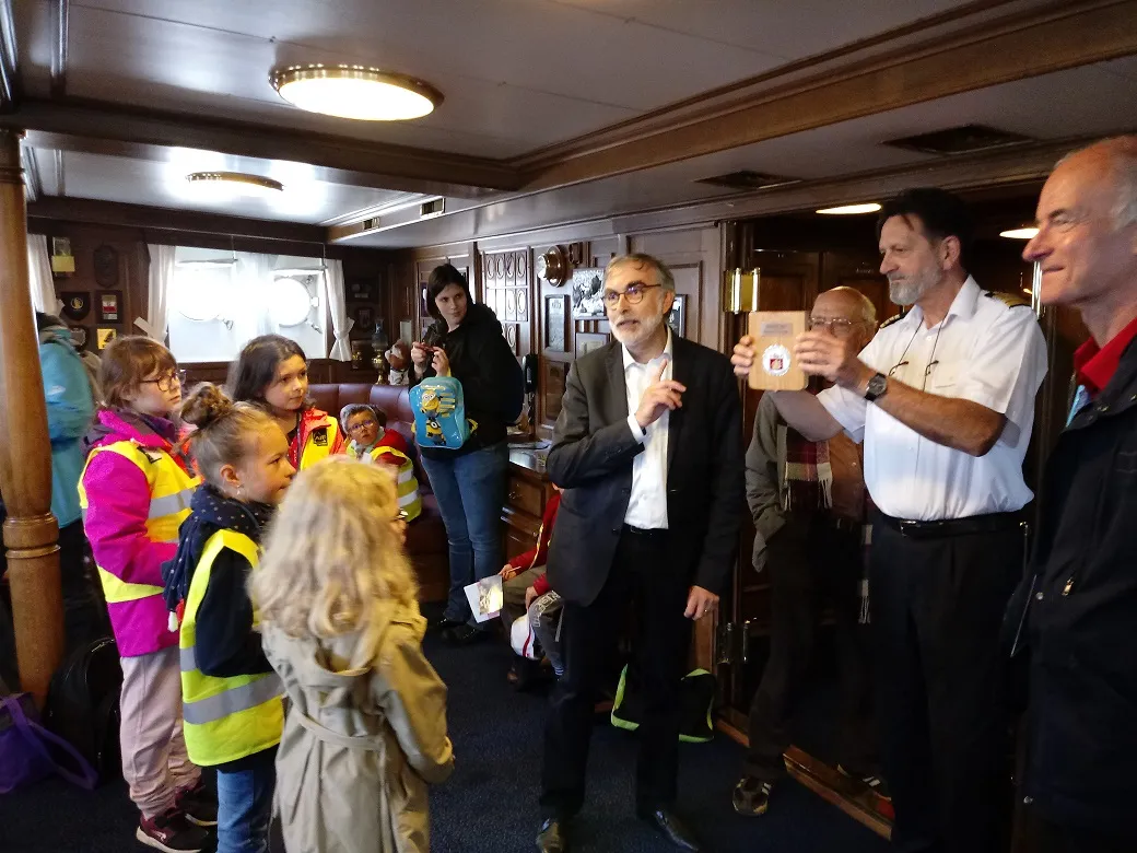 Każdy żaglowiec ma przydzielonego opiekuna spośród okolicznych miasteczek i wsi. Naszym jest nadsekwańska Vatteville la Rue. We wtorek odwiedził nas Burmistrz wraz z pięćdziesięciorgiem dzieci z tamtejszej szkoły – 9/10-latków. Wczoraj połowa załogi pojechała z rewizytą. Zostaliśmy bardzo serdecznie przyjęci. Po drodze pokazano nam „najpiękniejsze ruiny we Francji”(bez ironii) – Jumieges Abbey - przepiękny kompleks klasztorny częściowo zburzony w czasach Rewolucji Francuskiej. Z okien autobusu mogliśmy nacieszyć oczy pięknymi krajobrazami Normandii.