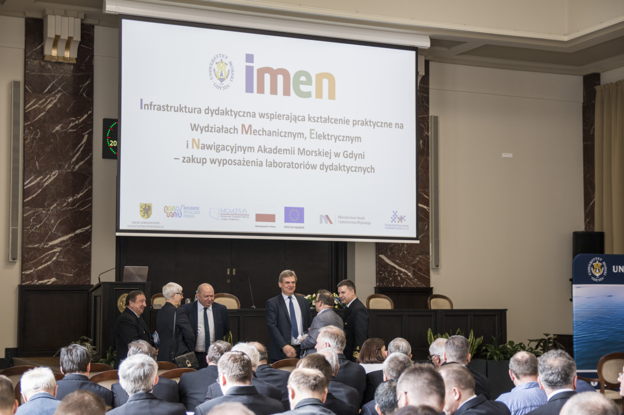 W dniu 10 maja 2019 roku o godz. 11.00 w Auli im. T. Meissnera Uniwersytetu Morskiego w Gdyni odbyło się uroczyste zakończenie realizacji projektu iMEN "Infrastruktura dydaktyczna wspierająca kształcenie na Wydziałach Mechanicznym, Elektrycznym i Nawigacyjnym Akademii Morskiej w Gdyni".