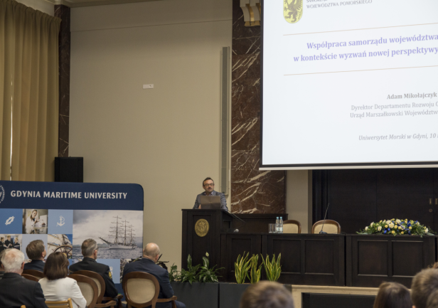 Podczas uroczystości głos zabrali przedstawiciele UMG – JM Rektor prof. Janusz Zarębski, Prorektor ds. Nauki prof. Ireneusz Czarnowski oraz zaproszeni goście – dr Wiesław Byczkowski, Wicemarszałek Województwa Pomorskiego, dr Zygmunt Krasiński, Dyrektor Krajowego Punktu Kontaktowego Programów Badawczych UE, dr Adam Mikołajczyk, Dyrektor Departamentu Rozwoju Gospodarczego Urzędu Marszałkowskiego Województwa Pomorskiego oraz Pani Joanna Zielińska, Przewodnicząca Rady Uczelni Uniwersytetu Morskiego w Gdyni, Przewodnicząca Rady Miasta Gdyni.