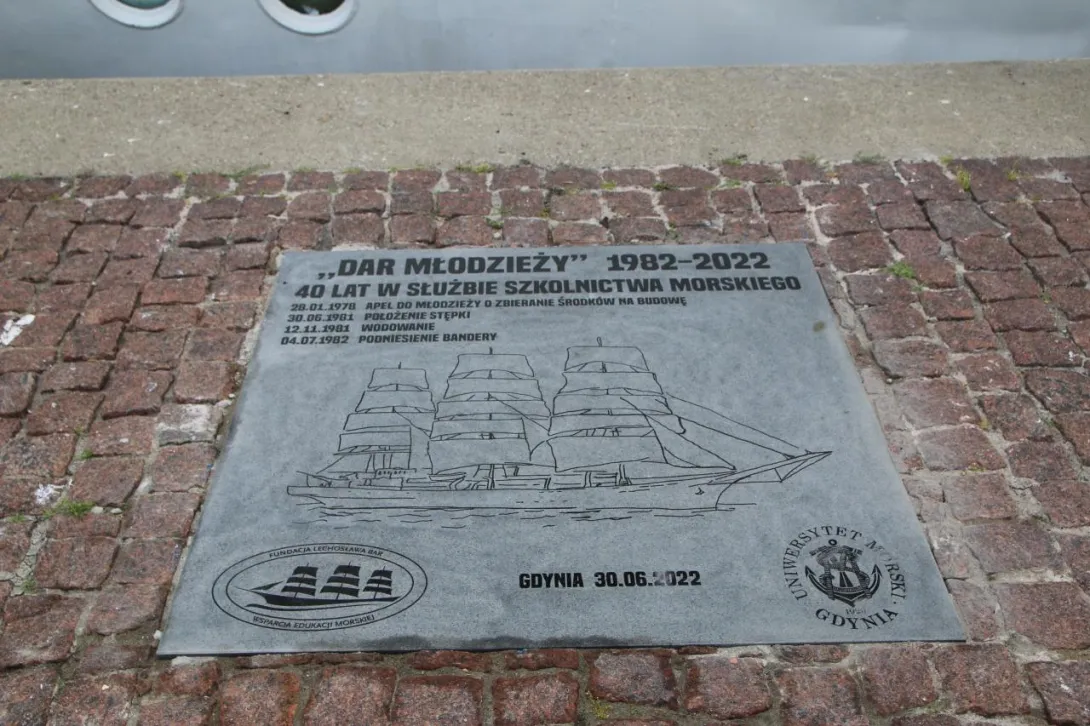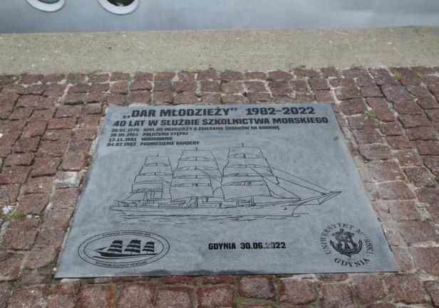 Po pięknej ceremonii banderowej na Nabrzeżu Pomorskim w miejscu cumowania „Daru Młodzieży” została odsłonięta pamiątkowa tablica jubileuszowa z okazji 40-lecia białej fregaty w służbie szkolnictwa morskiego, ufundowana przez „Fundację Lechosława Bar Wsparcia Edukacji Morskiej”. Jest to siódma z tablic odsłonięta na Nabrzeżu. Wcześniejsze tablice upamiętniają adm. Kazimierza Porębskiego – twórcę szkolnictwa morskiego oraz komendantów „Daru Pomorza” oraz „Daru Młodzieży”.