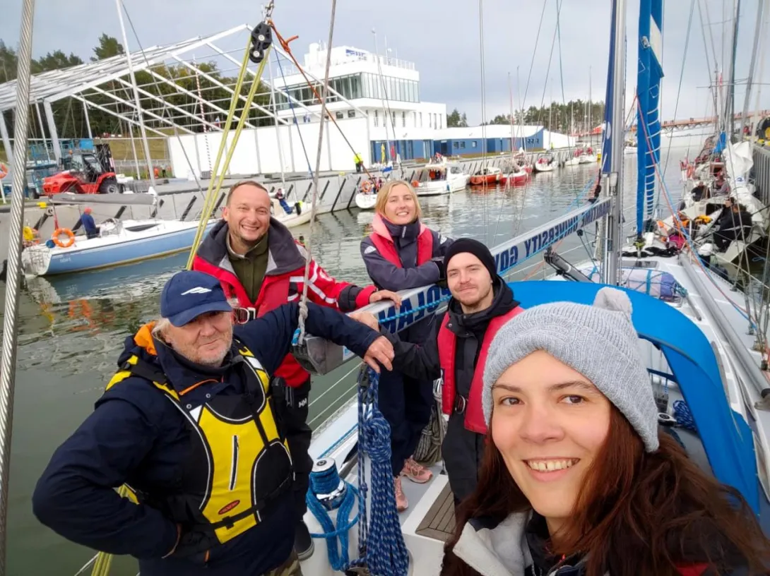 Jachtem w trudnym rejsie na Zalew Wiślany dowodzi bosman Ośrodka Żeglarstwa i Sportów Wodnych UMG, Krzysztof Zygmański, a załogę tworzą przedstawiciele aż trzech uczelni, Uniwersytetu Morskiego w Gdyni, Uniwersytetu Gdańskiego i Uniwersytetu Śląskiego w Katowicach.
