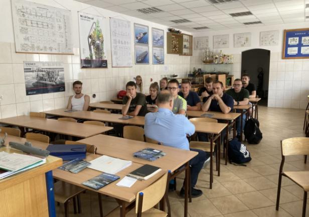 Po omówieniu z Dyrektorem szkoły Panem mgr Kazimierzem Toczko oraz nauczycielem przedmiotów zawodowych Panem mgr. inż. Pawłem Ciereszko wstępnego planu praktyk i warunków umowy, spotkano się również z uczniami, w celu krótkiego przedstawienia jednostki Horyzont II. Uczniowie chętnie zadawali pytania związane z ich praktykami morskimi, które rozpoczną się 15 września i potrwają 4 tygodnie. Horyzont II wraz z uczniami z ZSŻŚ wyruszy na otwarcie kanału żeglugowego przez Mierzeję Wiślaną, które zaplanowane jest na dzień 17 września.