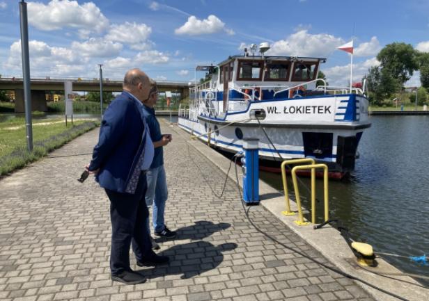 Na zakończenie wizyty w Nakle przedstawiciele UMG oraz ZSŻŚ wybrali się na przystań żeglarską, gdzie zaprezentowano jednostki żeglugi śródlądowej należące do Zespołu Szkół Żeglugi Śródlądowej.
