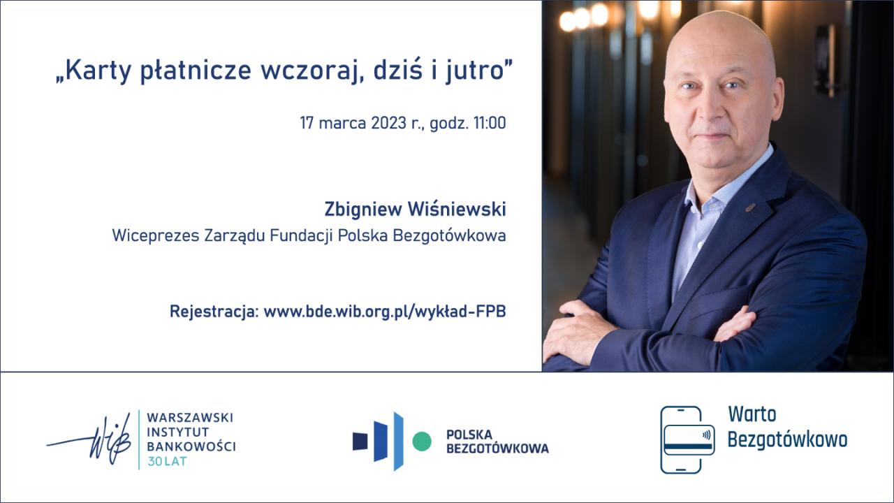zapraszamy do udziału w ogólnopolskim wykładzie online Zbigniewa Wiśniewskiego, Wiceprezesa Fundacji Polska Bezgotówkowa, pt.: „Karty płatnicze wczoraj, dziś i jutro”.