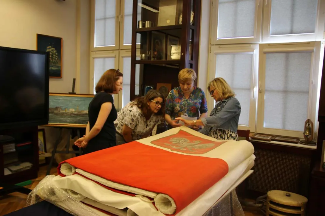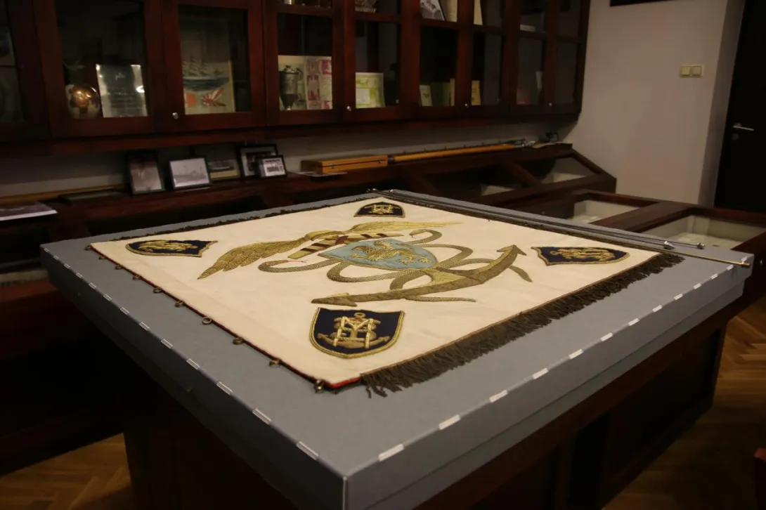 Zakończona została konserwacja 49 eksponatów z zasobów Sali Tradycji: w listopadzie ub. roku z pracowni powróciły cenne mapy, dokumenty i certyfikaty, jak również eksponaty z drewna i metalu, a kilka dni temu – przedwojenny sztandar Państwowej Szkoły Morskiej w Gdyni oraz bandery: galowa ze statku szkolnego PSM „Dar Pomorza” i trzy ze statków PMH - w czasie II wojny światowej pływających w konwojach i biorących udział w operacjach bojowych aliantów: m/s „Sobieski”, s/s „Kościuszko” oraz s/s „Chorzów”.