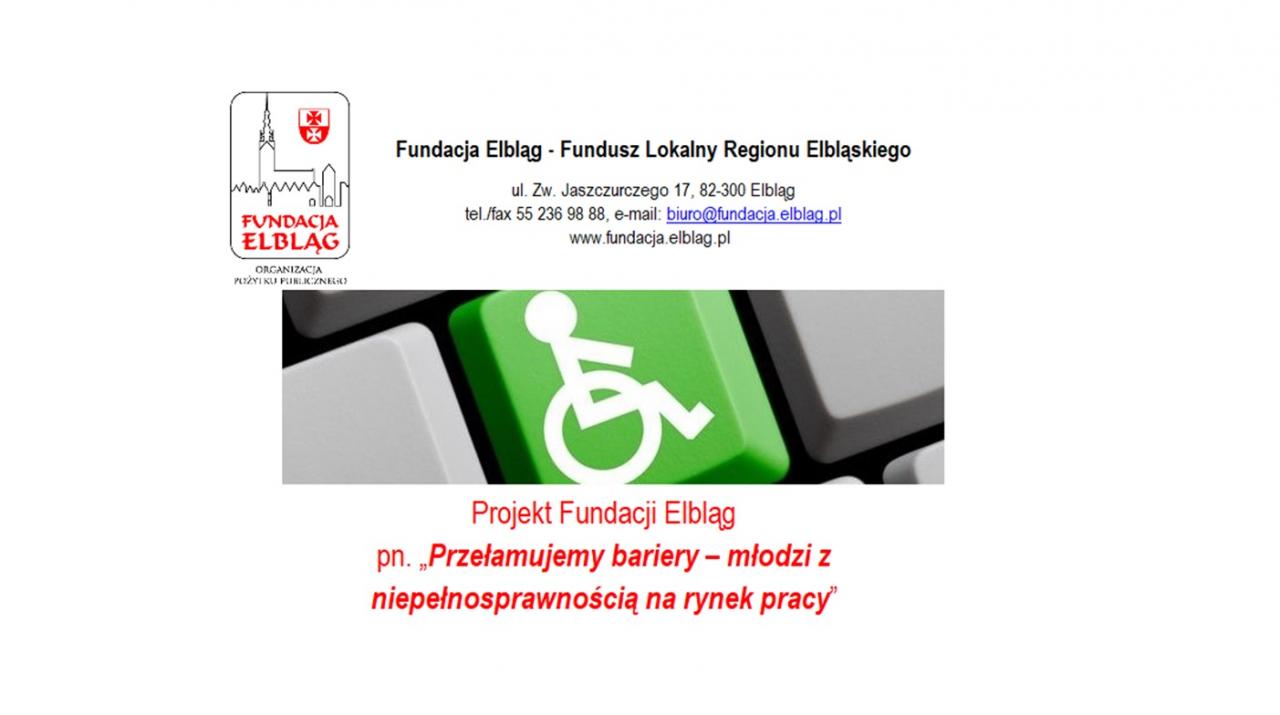 Fundacji Elbląg zaprasza do udziału w projekcie pn. „Przełamujemy bariery – młodzi z niepełnosprawnością na rynek pracy”