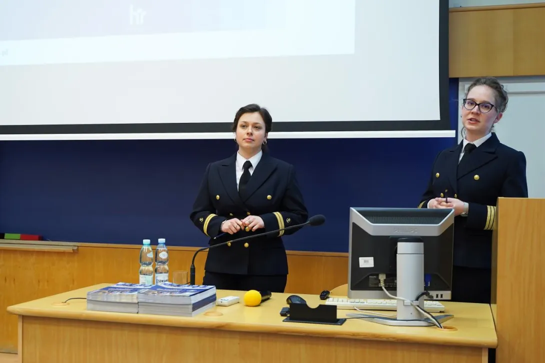 Akcentem z okazji Dnia Kobiet była także specjalna prezentacja przygotowana przez Panią Zofię Olchowy, II oficera na statku szkolnym UMG „Dar Młodzieży” i Aleksandrę Marcinkowską, intendenta na „Darze Młodzieży”. Panie opowiedziały o swojej pasji, codziennych obowiązkach, praktykach i podróżach.