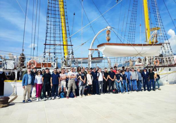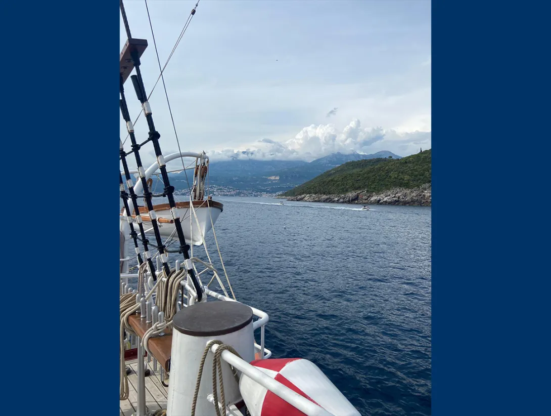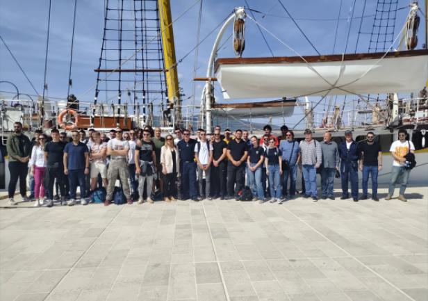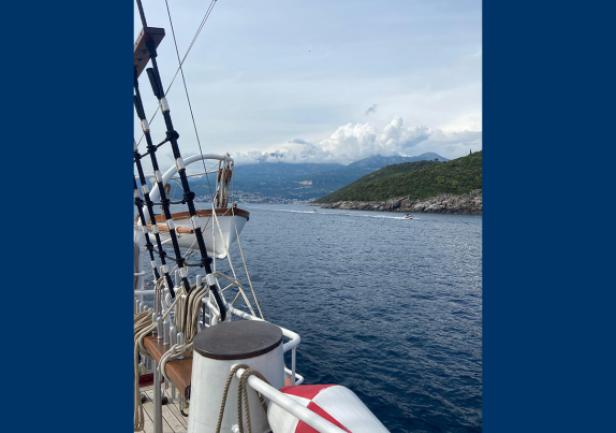 Istotną częścią ich wyjazdu był udział w trzydniowym rejsie po Morzu Adriatyckim na pokładzie statku szkolnego s/v Jadran, który rozpoczął się i zakończył w porcie Tivat. W praktyce morskiej na historycznym trzymasztowym szkunerze uczestniczyło także 27 studentów z Czarnogóry, którym towarzyszyło 5 wykładowców. Podczas pobytu na statku praktykanci mieli m.in. zajęcia z nawigacji, kilkukrotnie przepływali przez rejony trudne pod względem nawigacyjnym np. Cieśniny Verige i Kumborską, a także rzucali kotwicę. Jako ciekawostkę można dodać, iż żaglowiec Jadran w przeszłości zawinął do Gdyni (w lipcu 1939 r.) i była to ostatnia wizyta okrętu obcej bandery w Gdyni przed wybuchem II wojny światowej.