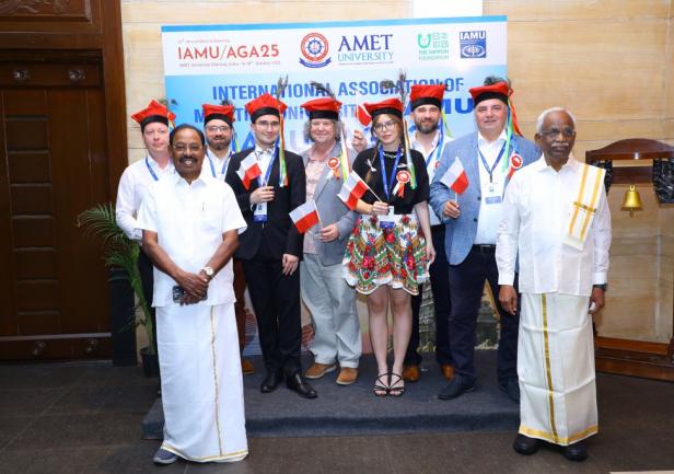 W dniach 14-18 października 2025 roku JM Rektor UMG prof. dr hab. inż. kpt. ż. w. Adam Weintrit oraz sześcioro przedstawicieli pracowników, doktorantów i studentów naszej Uczelni wzięło udział w 25-tym Zgromadzeniu Ogólnym Międzynarodowego Stowarzyszenia Uczelni Morskich IAMU AGA 2025. Wydarzenie to zostało zorganizowane przez Academy of Maritime Education and Training University (AMET University) w Chennai, w Indiach.