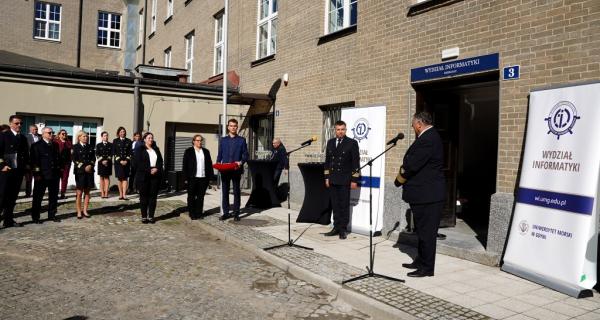 Gości wydarzenia powitał Dziekan Wydziału Informatyki prof. dr hab. inż. Ireneusz Czarnowski. Następnie głos zabrał JM Rektor prof. dr hab. inż. kpt. ż.w. Adam Weintrit, który, zwracając się do uczestników uroczystości, podkreślił, że ma ona wymiar symboliczny i należy ją traktować jako dobry prognostyk dla dalszego rozwoju utworzonego w roku ubiegłym Wydziału Informatyki.