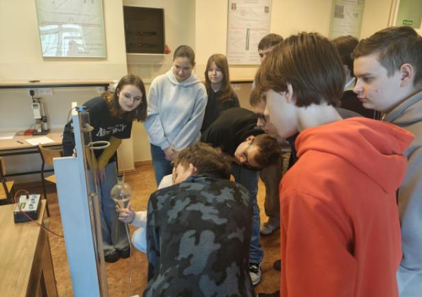 Spotkanie akademickie z fizyki pt. Dźwięk w akcji - tajemnice fal akustycznych poświęcone było falom akustycznym. Na wykładzie urozmaiconym o pokazy uczniowie dowiedzieli się co to jest dźwięk. Poznali podstawowe wielkości charakteryzujące fale akustyczne, ich zastosowanie oraz sposób generowania dźwięku przez instrumenty muzyczne. Na zajęciach praktycznych uczniowie mieli możliwość samodzielnego przeprowadzenia eksperymentów mających na celu wyznaczenie szybkości dźwięku w powietrzu i częstotliwości dźwięków oktawy. W oparciu o metody matematyczne do interpretacji danych uczniowie przeprowadzili analizę wyników. Pokazy i eksperymenty urozmaiciły zajęcia, pobudzając ciekawość i kreatywne myślenie. Udział uczniów w zajęciach akademickich to cenna okazja do nauki i poznania przyrody poprzez doświadczenie, co podkreśla aspekt praktyczny zajęć. Ponadto udział w zajęciach pozwolił zapoznać się z działalnością środowiska akademickiego.